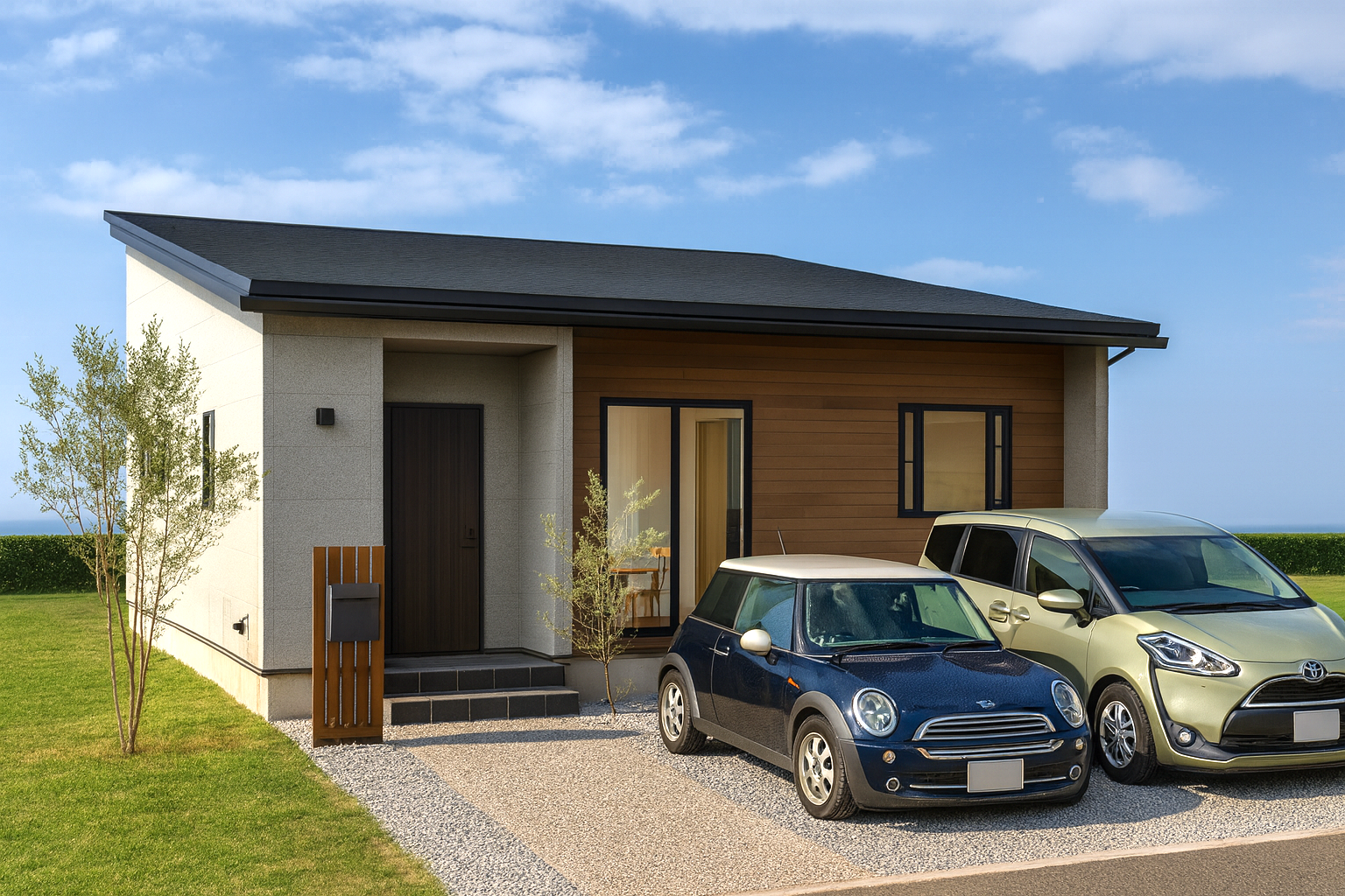 2LDKでコンパクトだけど、吹き抜けで開放感のある平屋です。