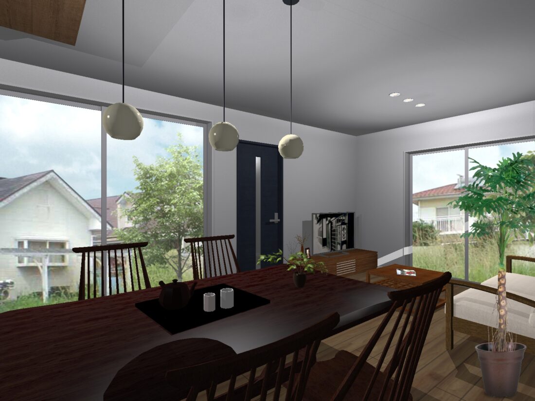 ・リビングから眺めるフライべートを守れる中庭のある家