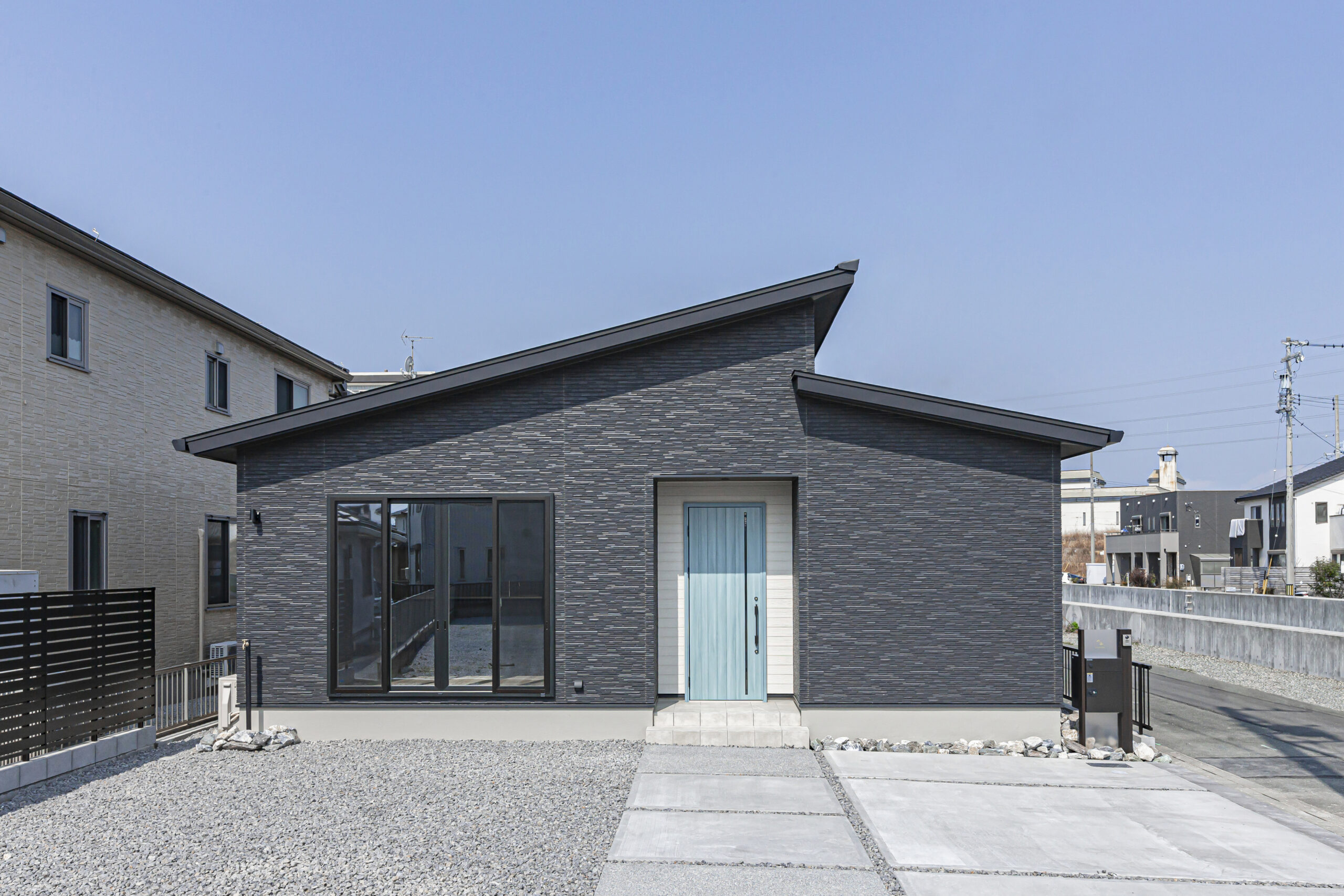 グレーでまとめられたシックでお洒落な平屋のお家。